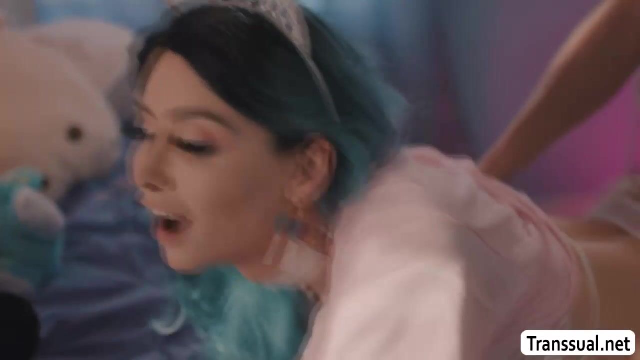 Busty shemale lets her guy bestfriend watch while shes toying her wet asshole.After that,she lets him put his hard dick inside her wet ass and she then throats it passionately after.Next is,she lets the guy bareback her ass again and again.