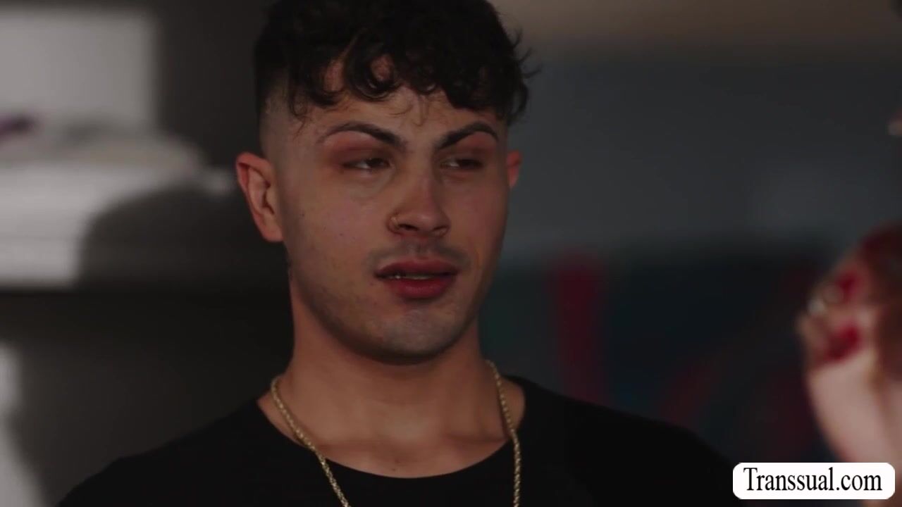 Trans stepmother caught her stepson watching her while shes changing clothes.Her stepson gets out and they start kissing each other on the bed.Next is,she throats his hard big cock passionately and lets him bareback fuck her ass.