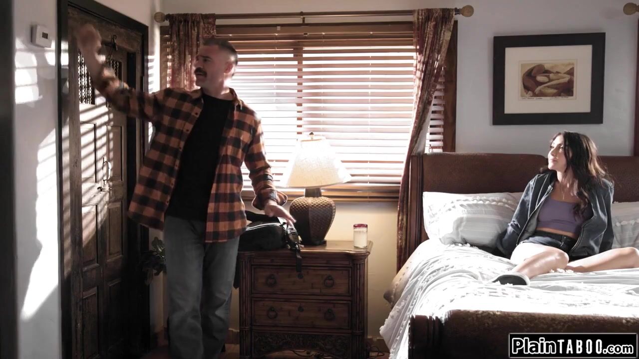 With her bf out of the way a brunette teen seduces his stepdad.The small tits brunette gets her shorts pulled down to get her pussy licked and masturbated.She deepthroats his big cock and sets her hairy snatch on his dick and fucks him hard