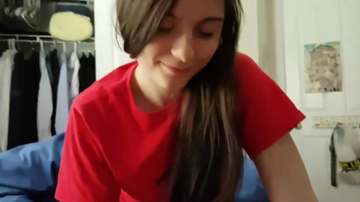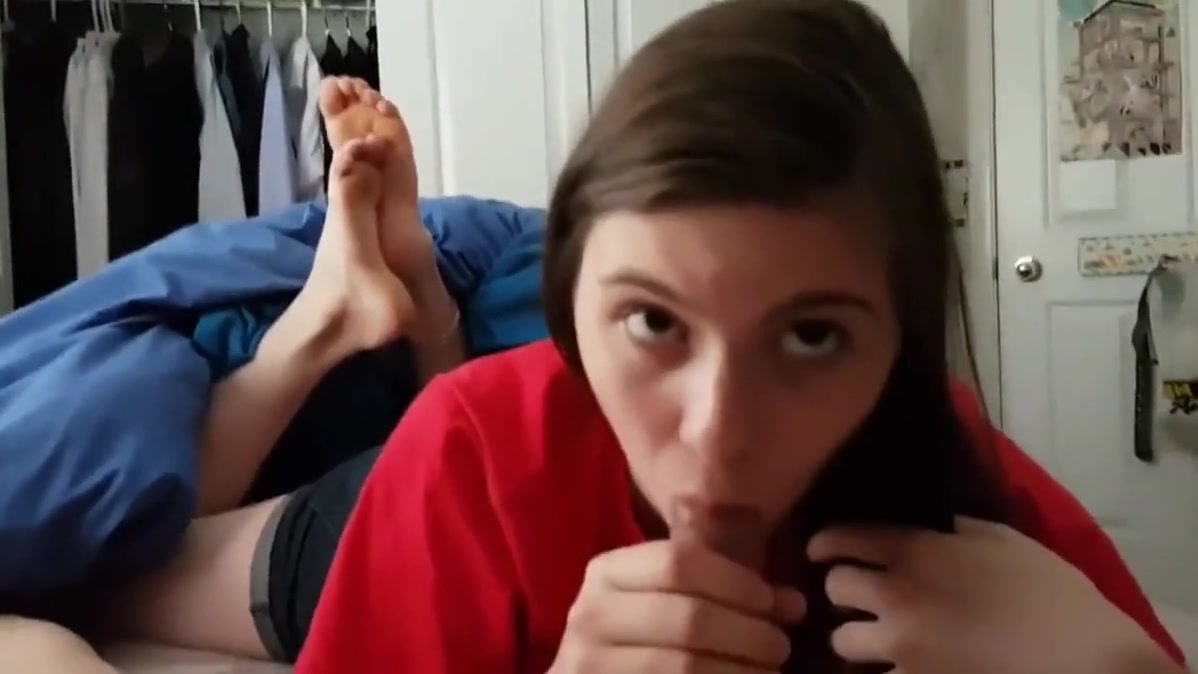 Cute girl sucks off her bf's uncut dick. Swallows the cum but doesn't like it much.