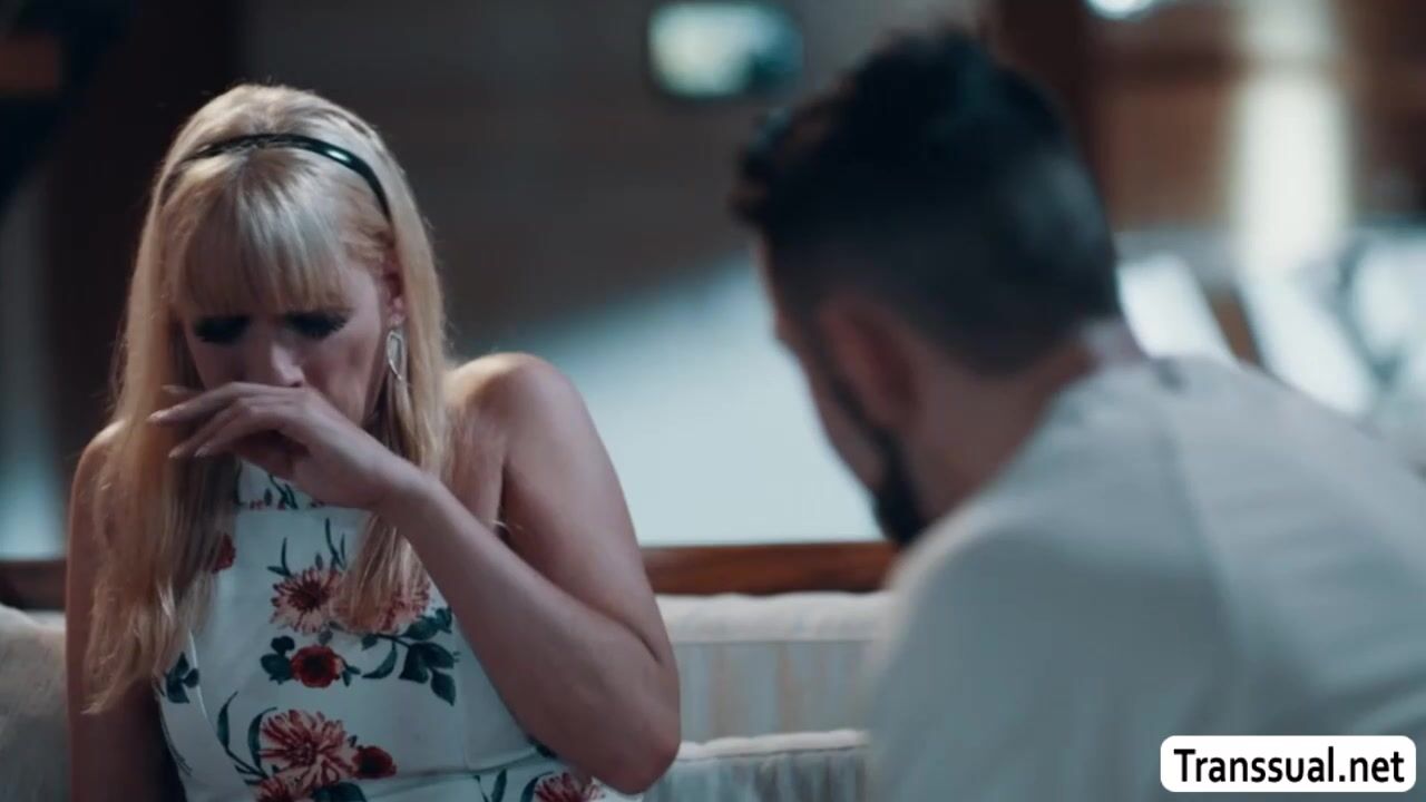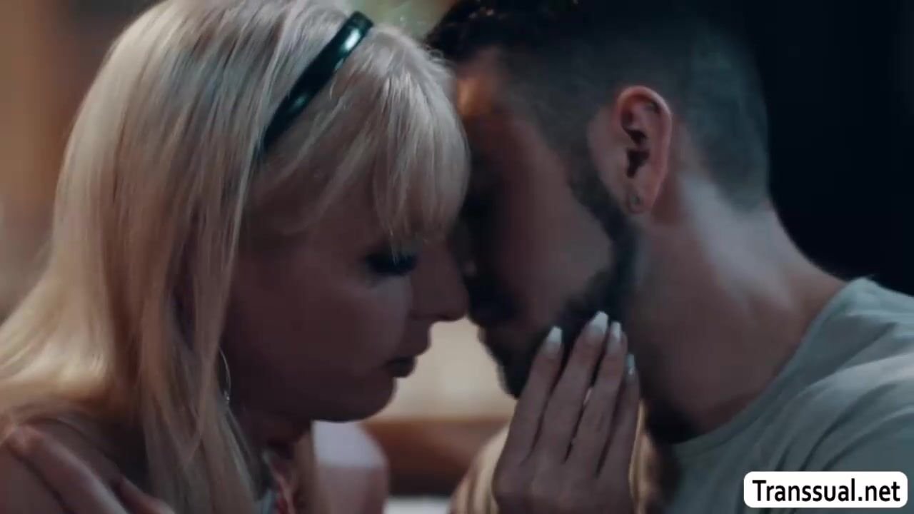 Trans stepmommy helped by her handsome stepson find her lost wedding ring.After they find it,they start kissing each other on the couch and she then throats stepsons big cock passionately.In return,stepson bareback fucks her tight ass so hard.