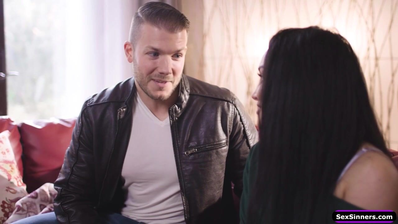 Small tits petite brunette and her guy friend give in to their sexual tension.He kiss the hottie and licks and fingers her pussy until she burst out a squirting orgasm.The tattooed babe deepthroats his big dick.She sets herself on his cock and rides