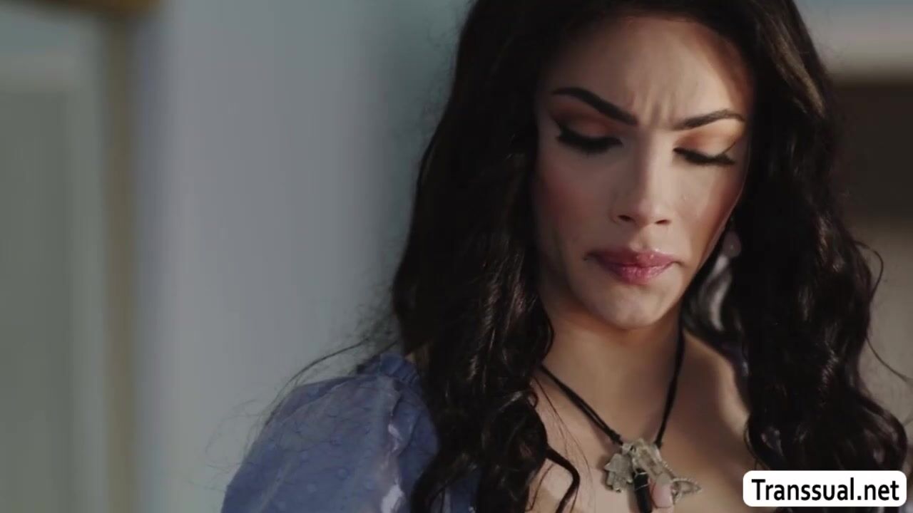 Tgirl stepmom caught her stepson watching while shes changing clothes in her room.Instead of getting mad,she lets him throat her shecock and in return,she throat his big cock too and lets him bareback her wet ass so hard.