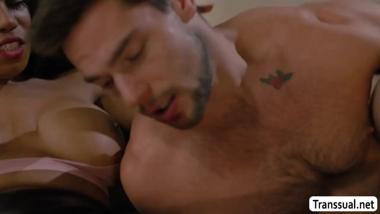Ebony TS disturbs her stepbro while his watching tv on the couch.After that,they get horny and start kissing each other.Next is,she lets her stepbro suck her tranny cock passionately.In return,she bareback fucks his tight ass so hard.