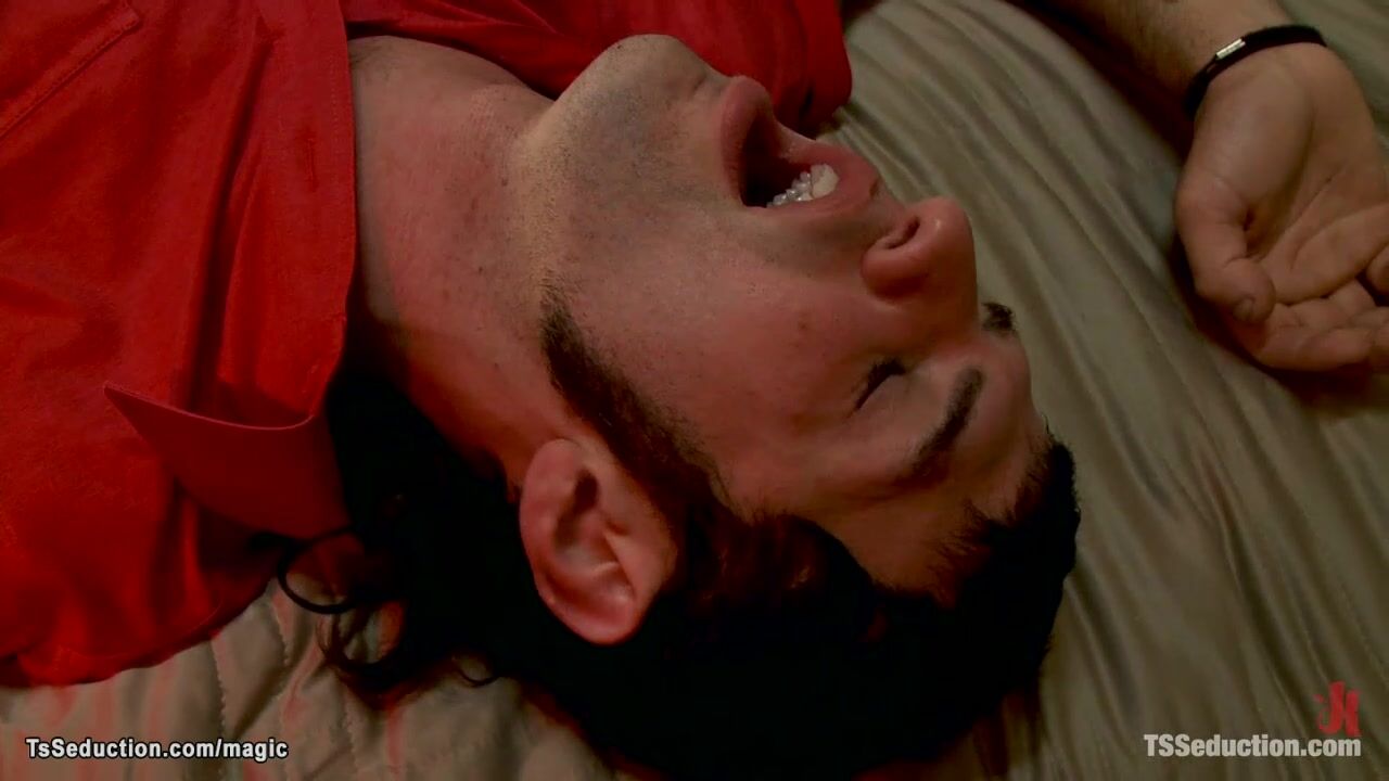 Huge boobs MILF Latina shemale Jessica Host complains to hotel manager Reuven and then ties him and fucks in mouth and ass with big cock