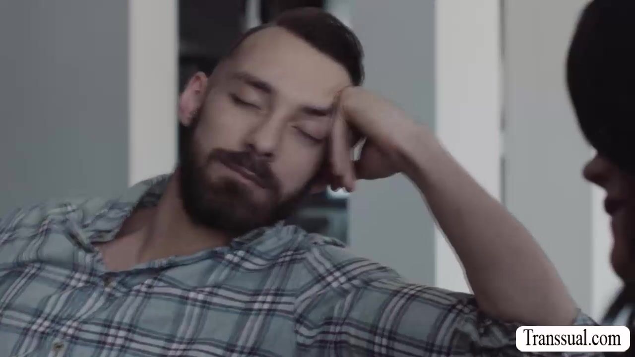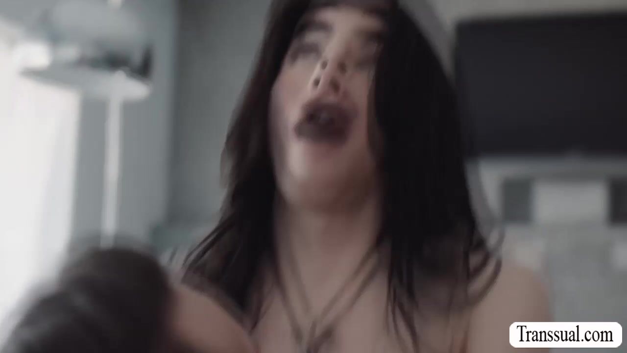 Gorgeous shemale brings her new boyfriend into her place and then they start kissing each other on the couch.After that,they suck their hard big cock passionately and she lets him bareback fuck her wet ass so deep and hard.