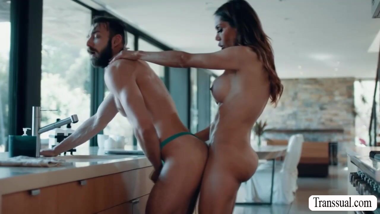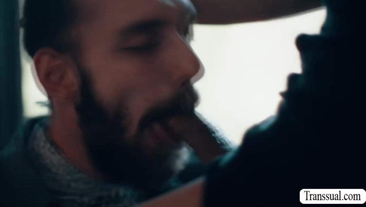 Horny shemale stepmom goes down and lets her new stepson suck her hard tranny cock passionately.After that,she lets her stepson bend over and she then bareback fuck his tight wet ass so deep and fucking hard.