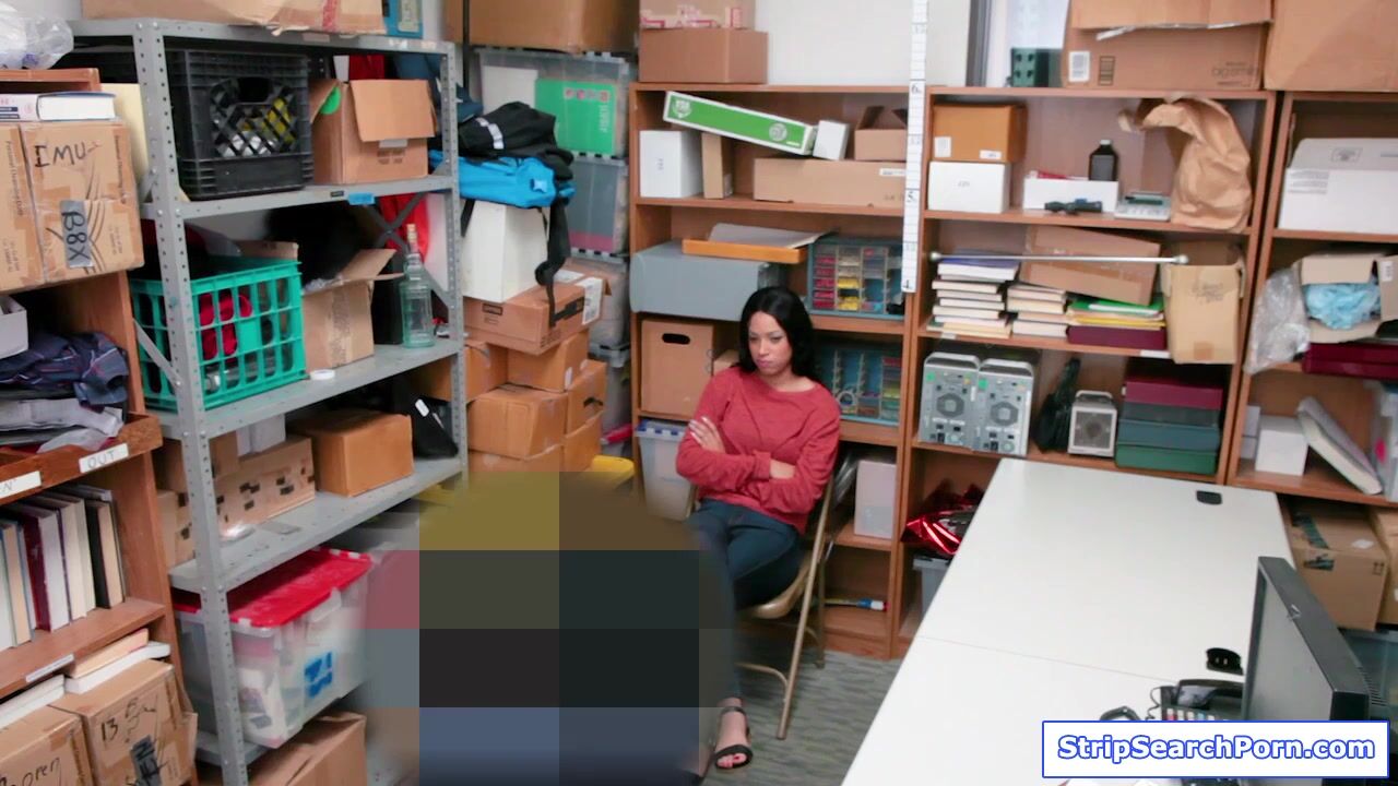 An ebony babe submits to stripsearch after she got caught stealing.The security officer takes her bra and panties then sniffs them.He offers her a way out in exchange for having sex with him.She takes it,blowjobs his big cock then lets him fuck her.
