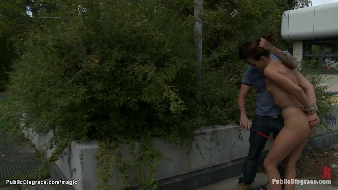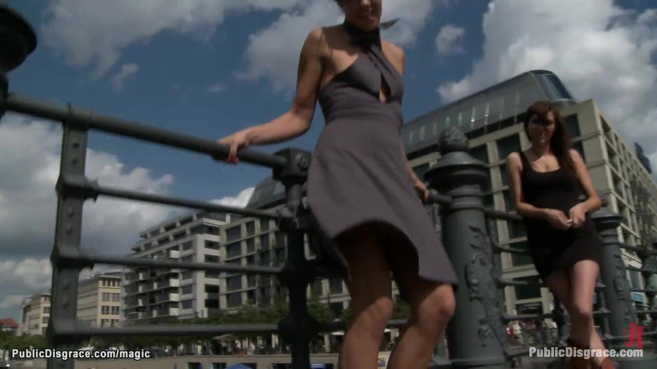 Hot ass German babe Black Lady is tied and humiliated in public by lezdom Princess Donna Dolore then fucked by big cock Tommy Pistol in underpass