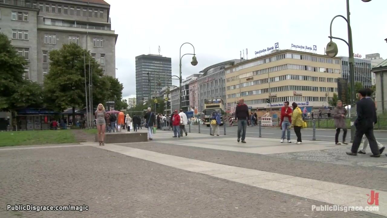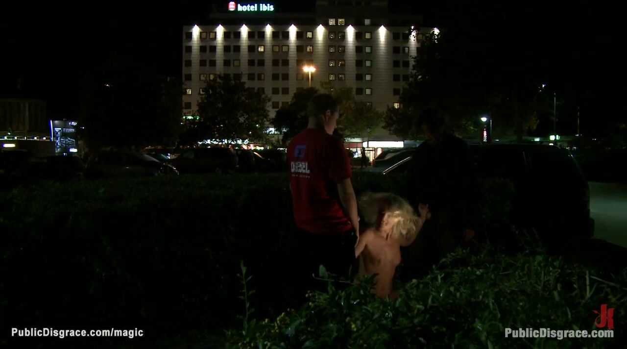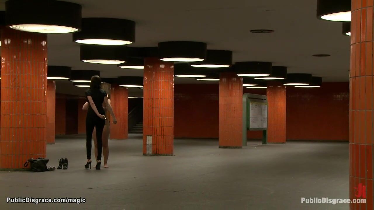 Naked German blonde Uma Masome gets head boxed in subway by Princess Donna Dolore then outdoors group fucked by big cock strangers at night