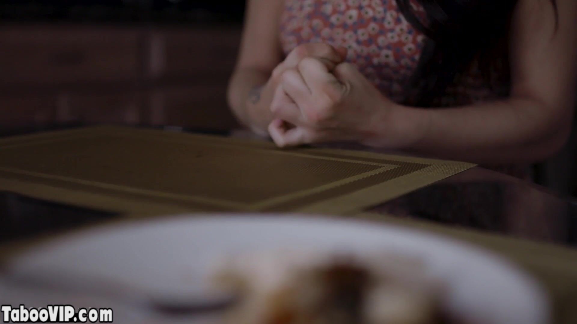 Dirty daddy saying good night to his teen stepdaughter