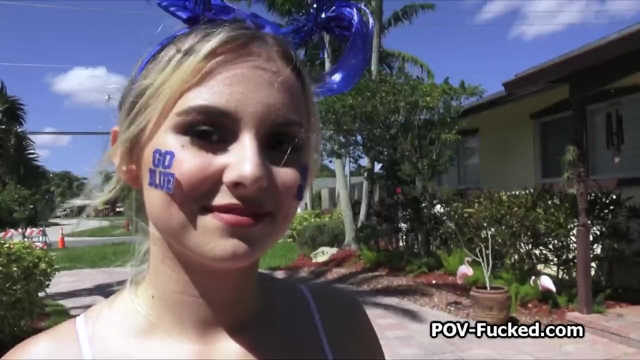 What a cutie just got out of this white van. She looks super fuckable. Her name is Aria and she is rising money for the football team. Fuck yes!