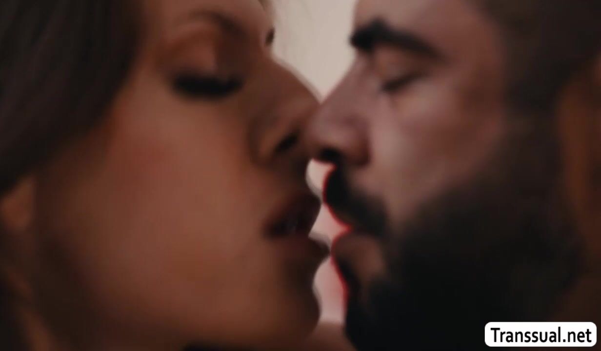 Stunning shemale is on her bed busy on her cellphone and her fat boyfriend enter her room.They start kissing each other on the bed and she lets her boyfriend suck her tranny cock.In return,she throats his dick too and lets him bareback her ass.