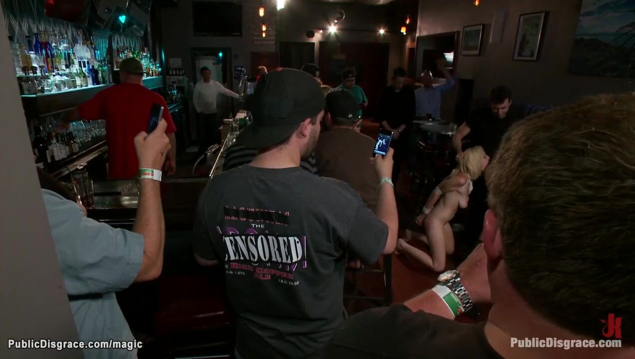 Description: Natural busty blonde babe Rylie Richman gets nipples clamped and pussy vibed by Princess Donna Dolore and James Deen and fucked in mouth in public bar