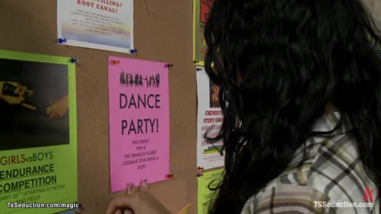 Tall brunette shemale lady Honey Foxxx caught football player Scout masturbating in shower then took him down and anal fucked in locker room
