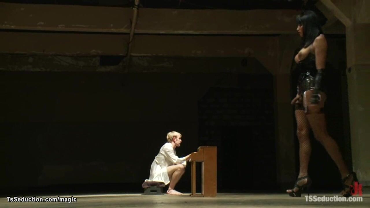 Big tits MILF Asian tranny domme with big tits Yasmine Lee in lingerie binds and fucks in mouth man slave Ned Mayhem then anal fucks him with big cock