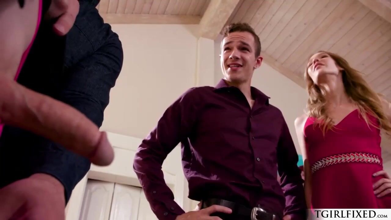 Busty and tattooed shemale Lena Moon meets stud Jayden Marcos.Their friends left them,the dude starts sucking her ts cock.The big tits tranny returns the favor,she deepthroat blowjobs his dick.He bareback anal fucks her tight pale asshole.