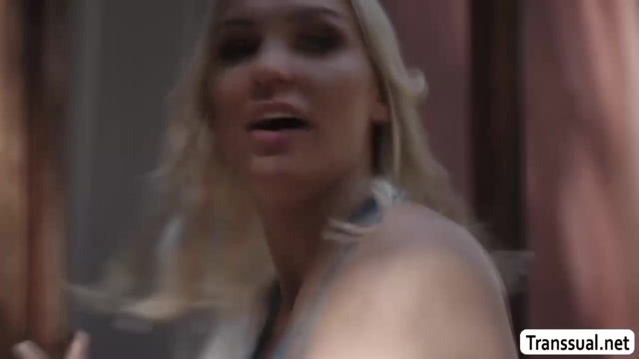 Big tits shemale and her blonde friend are taking a jogg early in the morning.After that,her friend got stucked in the window when tries to enter their.Instead of helping her,she licks her pussy first to makes it wet and fucks it so hard.