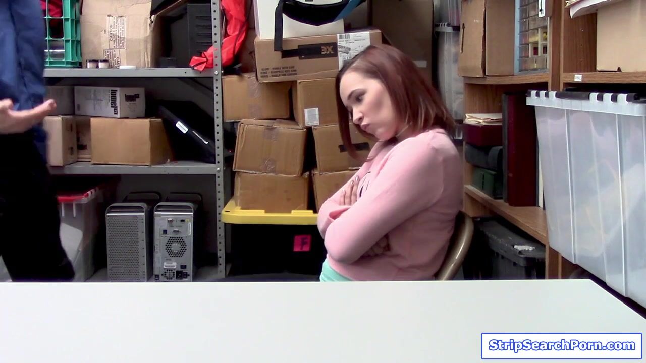 An officer recovers the jewelry after strip search.The teen shoplifter cooperates and does what he wants.She masturbates her pussy then blowjobs the old man.The guy licks and masturbates the small tits babes shaved pussy before fucking her.