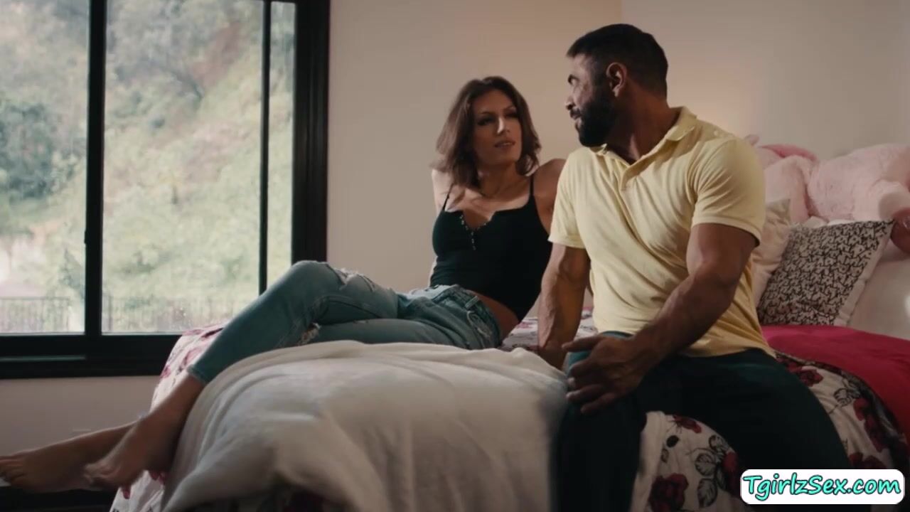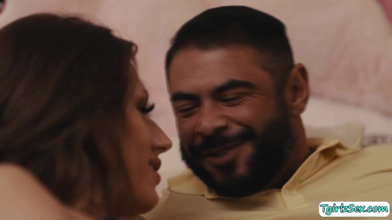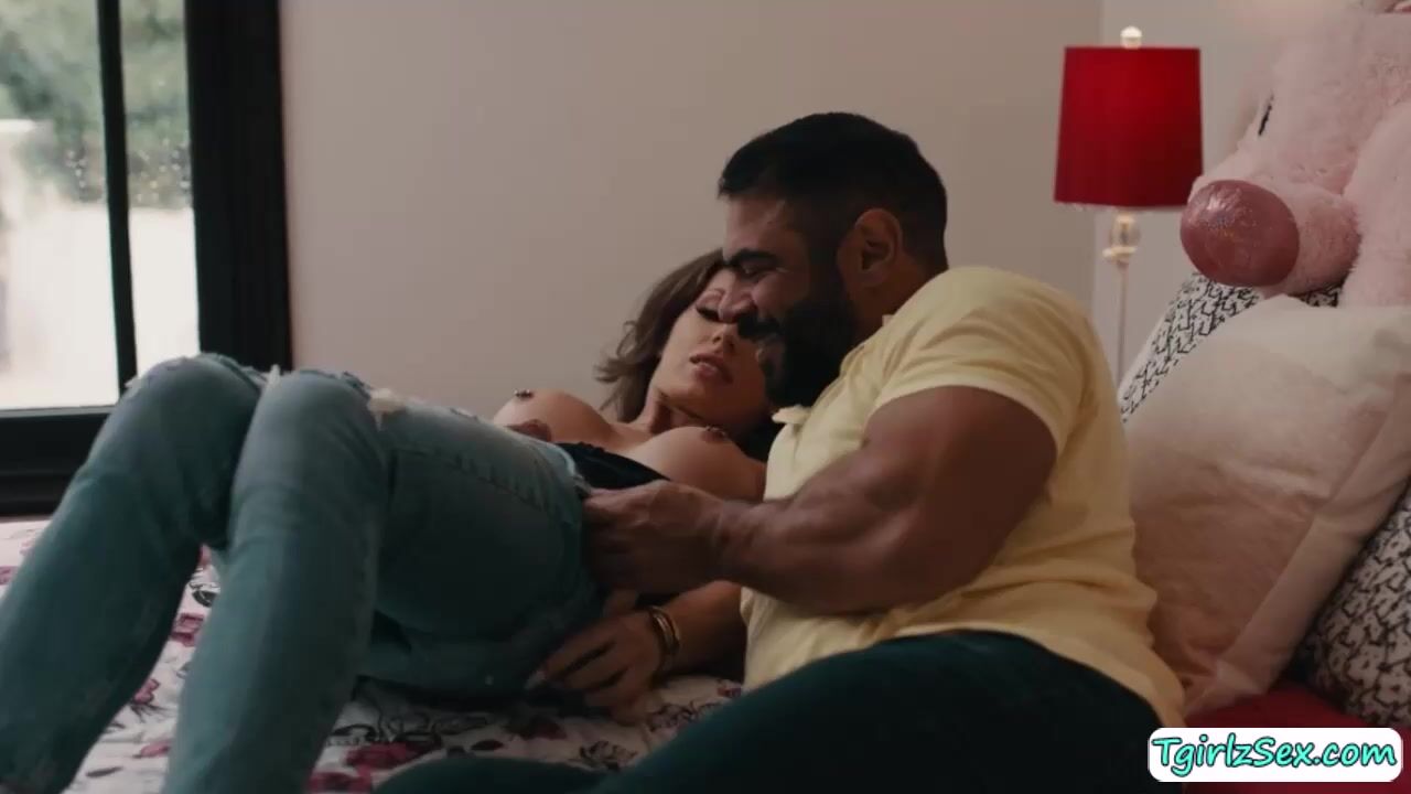 Big boobs brunette shemale Jade Venus flirts with her stepdad kissing passionately and make him deepthroat her big tranny cock before they blowjob each others dick in 69. The busty tbabe stretches big ass for a rimjob and hardcore bareback anal ride.