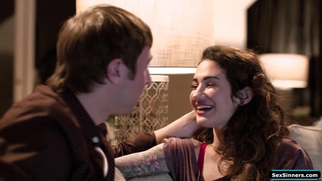 Brunette goes to bed leaving her gf alone with her ex.They kiss and quickly the big tits babe goes upstairs.She kisses and orals her gf.While shes masturbated she suggests a 3some.The ladies suck his cock and the big tits hottie rides while licking