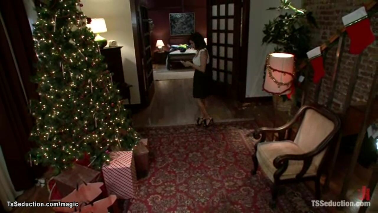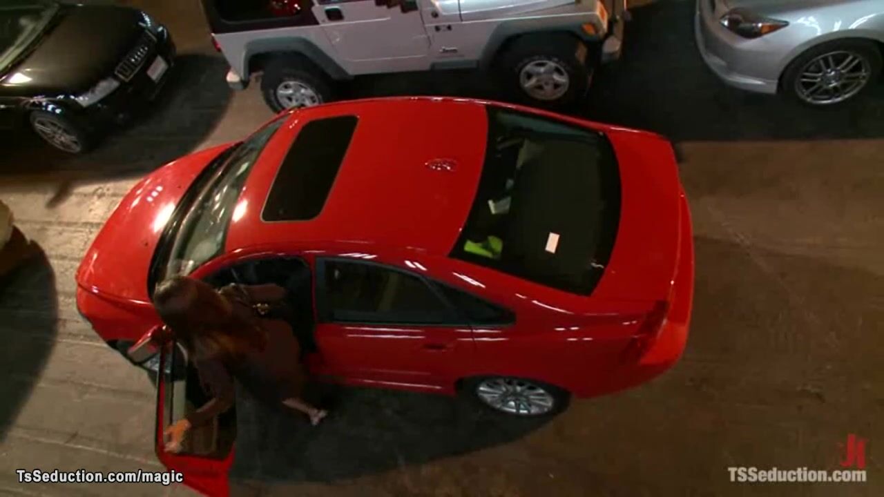 Shemale Carmen Moore accidentally hit mall cop Landon and shove him in a trunk and drive him home then with girlfriend Jessie Cox fuck him in bondage threesome