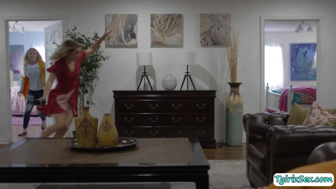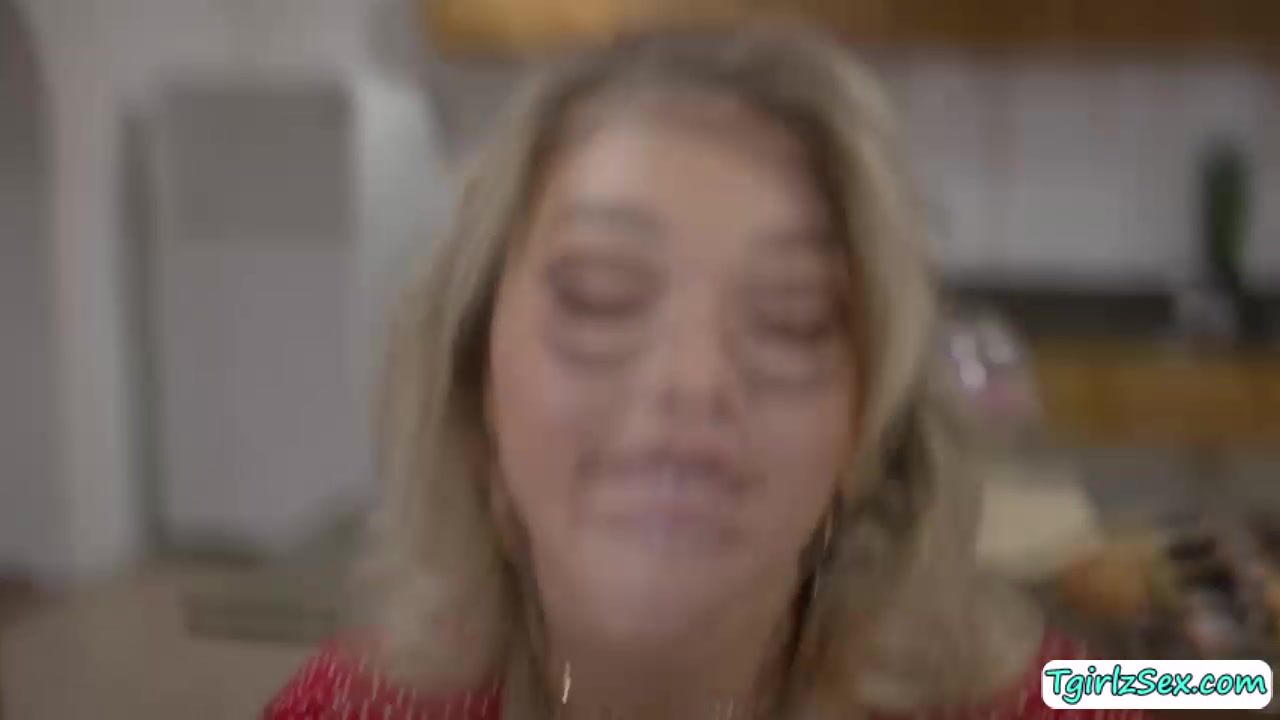Tall blonde shemale Emma Rose pulls the pants down of the hunk plumber and gives his big ass a rimjob and his huge dick a deepthroat blowjob. The small tits tbabe stretches his asshole for a hardcore doggystyle and missionary anal bareback while masturbating tranny dick.