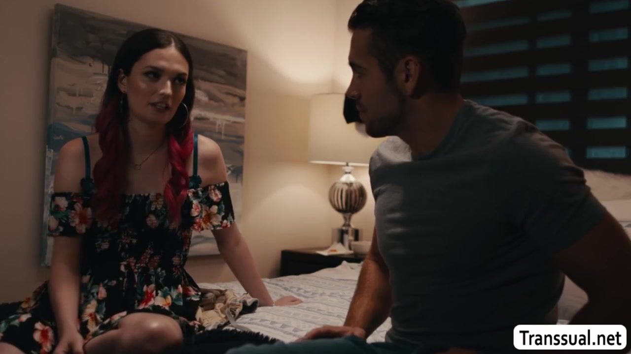 Skinny shemale goes to the room of her stepbrother and then they start kissing each other.Next is,she throats her stepbrothers big cock passionately and in return,her stepbro bareback fucks her wet ass so deep and hard.