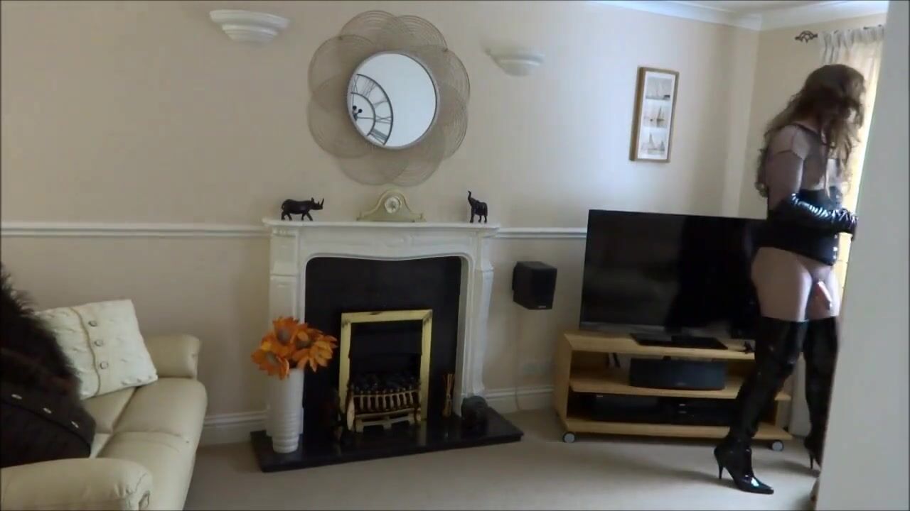 Sexy Transvestite in Thigh Boots walking with her butt plug in - and enjoying it