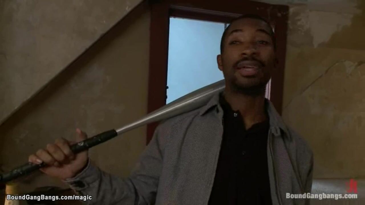 Hot brunette girlfriend Sarah Shevon pays boyfriends debt to interracial gang and in bondage rough anal gang bang fucked by huge dicks on old mattress