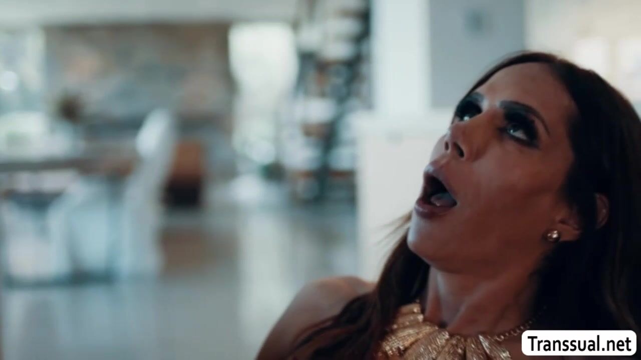Busty shemale goes to the kitchen while her stepson is making a coffee for her.After that,she gets horny and lets her stepson suck her hard tranny cock.In return,she licks his ass first and she then bareback it so deep and hard.