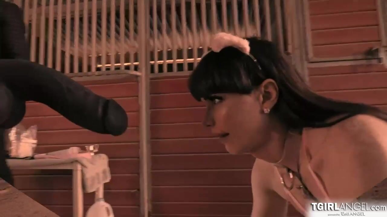 Sexy in pink cat ears,small tits shemale Natalie Mars shows off her wild side as she crawls to stud Hell4slootzs cock.The brunette tranny wraps her lips around his dick. He fills her asshole with a massive black dildo.The dude bareback fucks her ass.