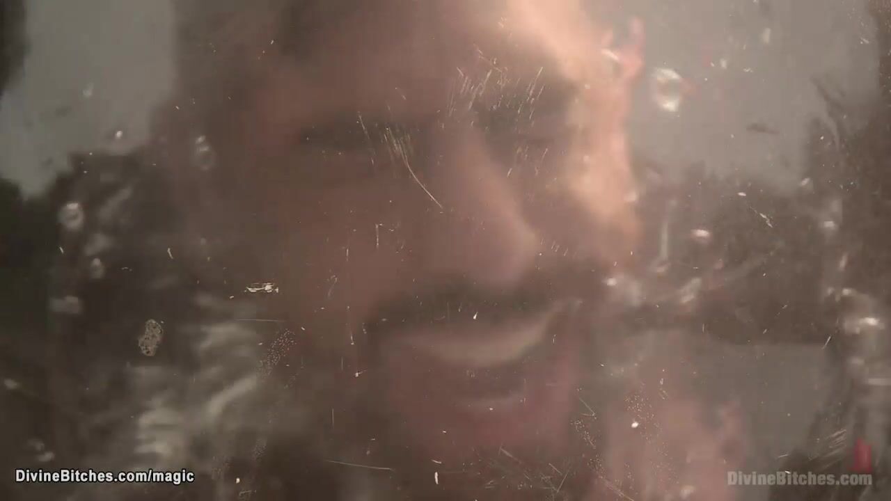 Blonde femdom in leather Maitresse Madeline Marlowe dives head of man slave Samir Hott in toilet then pegs him bound in strait jacket till rides his dildo gag