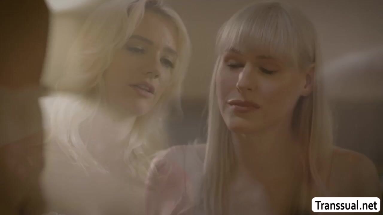 Beautiful blonde and her shemale bestfriend are on the bed kissing each other passionately.After that,she throats the hard shecock of her TS bestfriend.In return,smalltits Tgirl licks and fucks the wet pussy of her bestfriend.