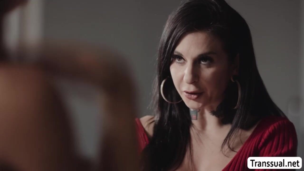 Goth stepmom and her busty shemale stepdaughter are on the couch kissing each other.Next is,she throats her hard shecock and in return,her TS stepdaughter licks and fucks her wet tight pussy so deep and hard.