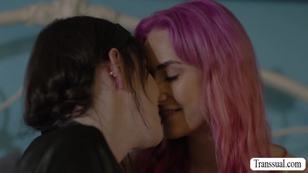 Hot shemale and her gorgeous friend are on the bed kissing each other.After that,she lets her friend suck her tits and her hard tranny cock passionately.In return,she fucks the tight wet pussy of her big tits bestfriend so deep and hard.